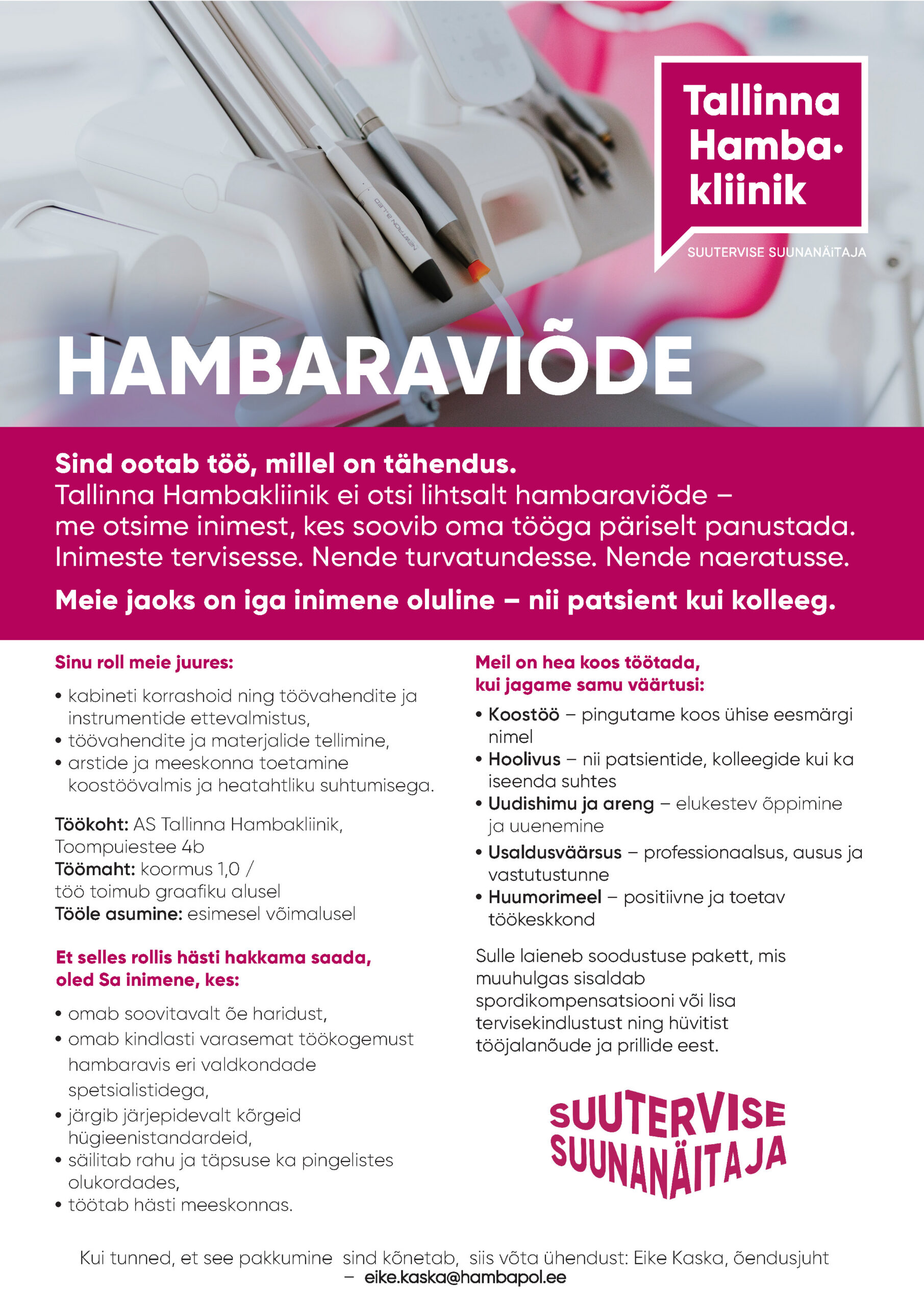 Tallinna Hambakliinik ei otsi lihtsalt HAMBARAVIÕDE –